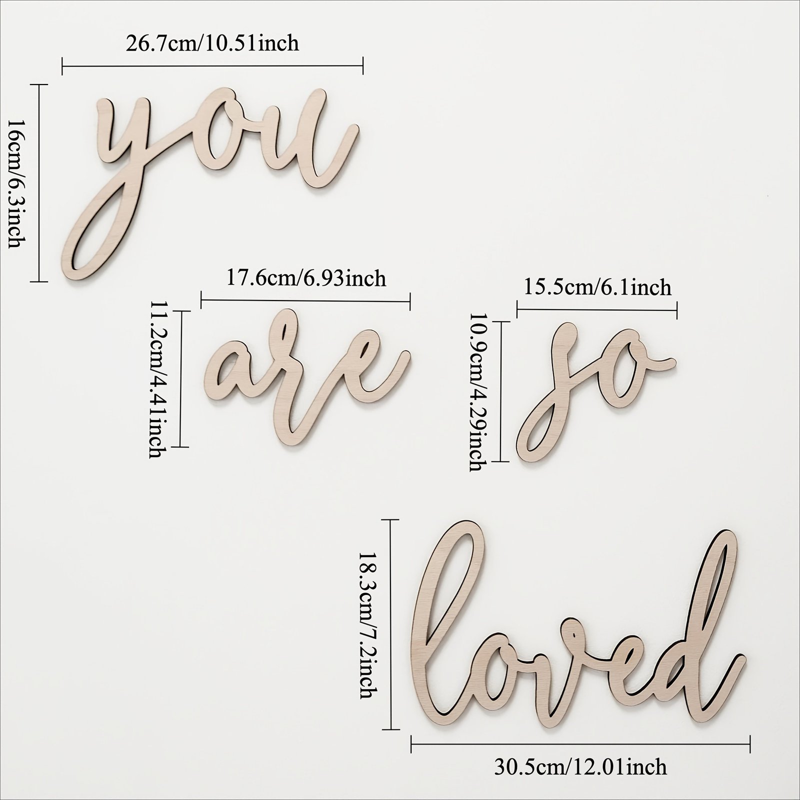 | Packaging Includes | You will receive 4 wooden nursery decorations, including [you], [are], [so], [loved]; This themed wall decor will add a modern and simple touch to your home |