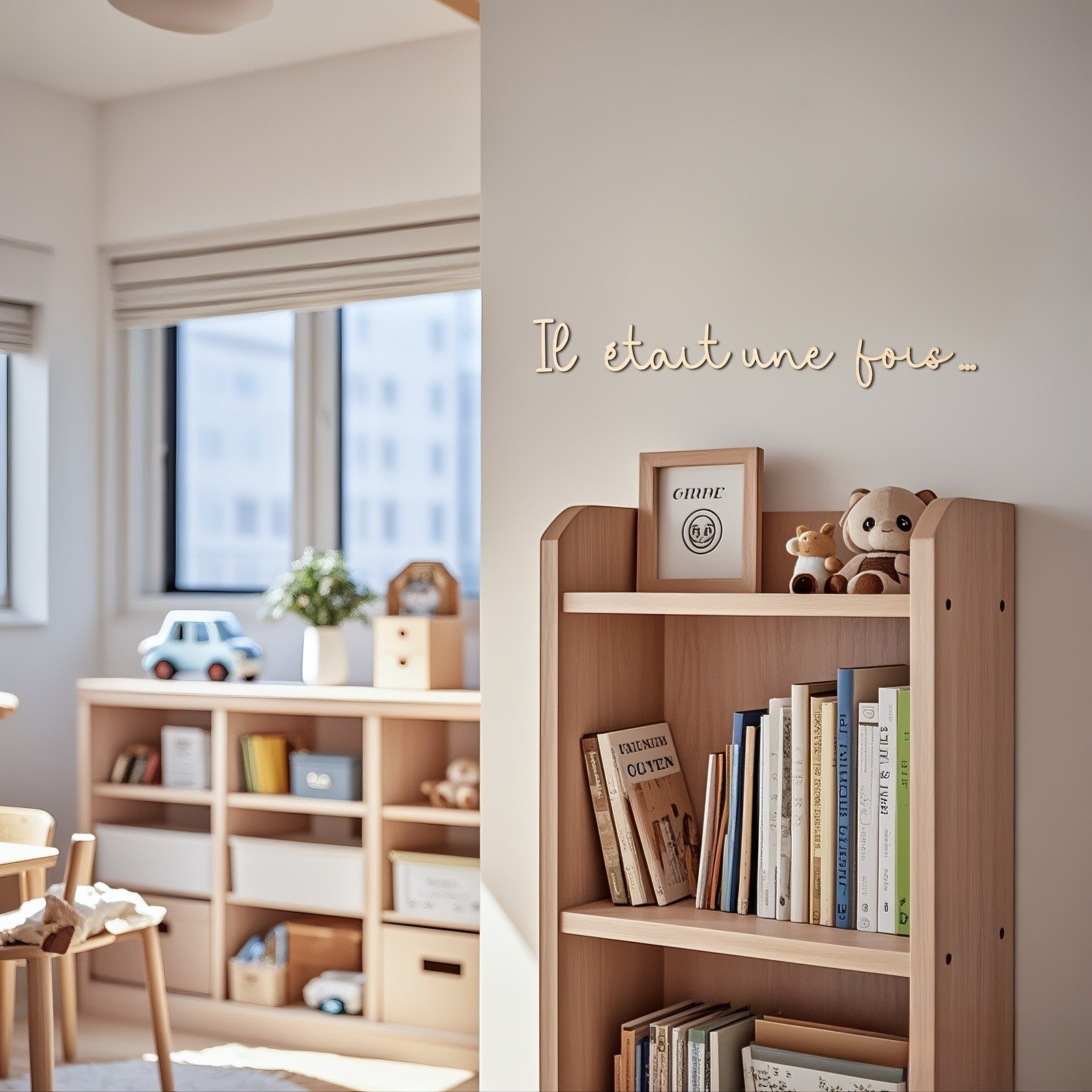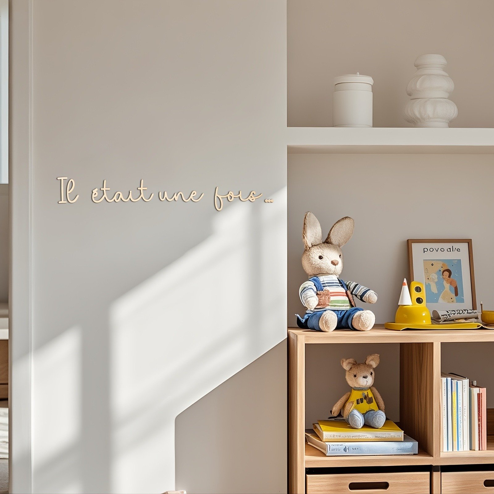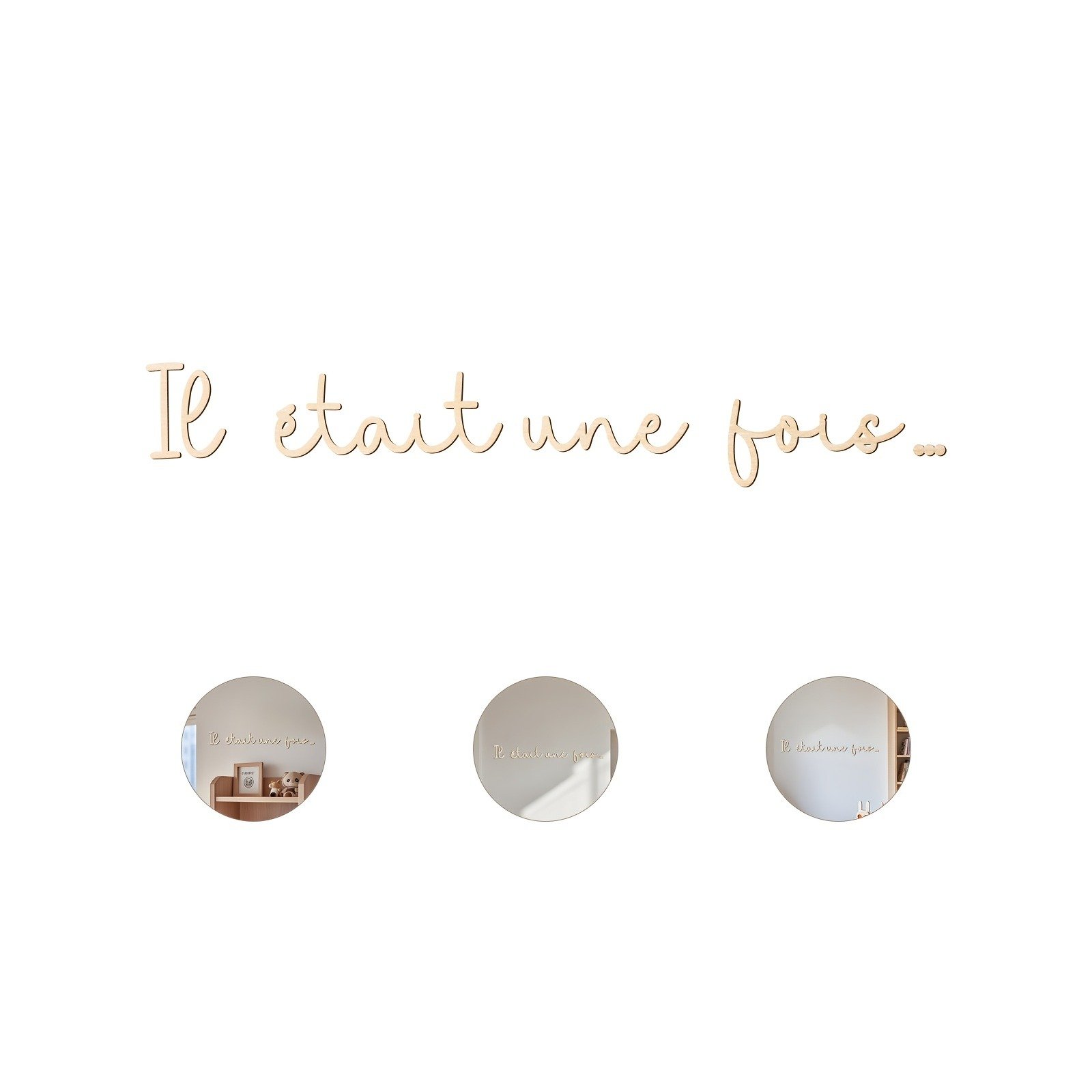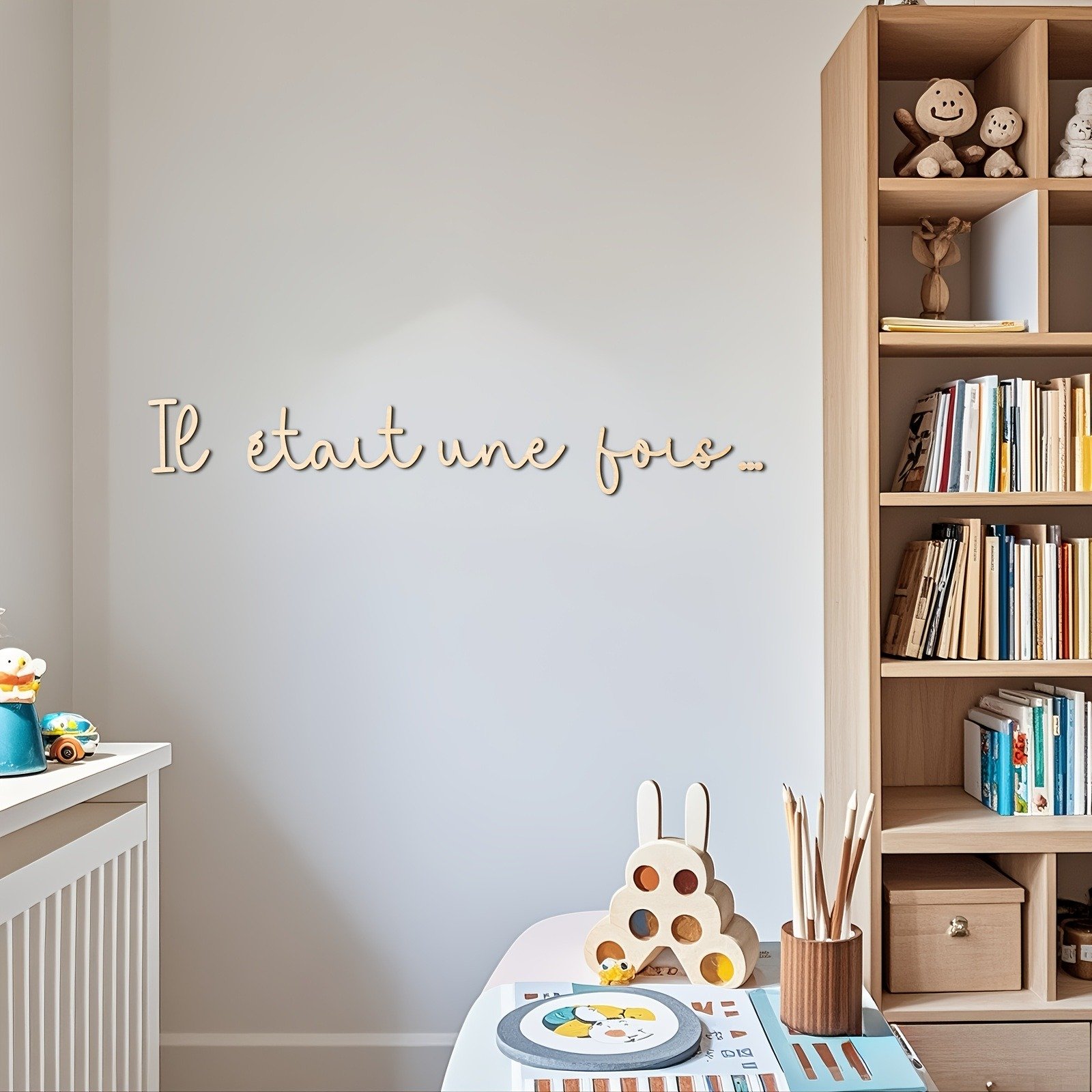 Il était une fois – Wooden Wall Art Decor – Bohemian Style, Wood Lettering for Reading Nook or Room Decoration, Self-Adhesive, Reusable, Rectangular Shape, No Frame Needed, Wood Decor
