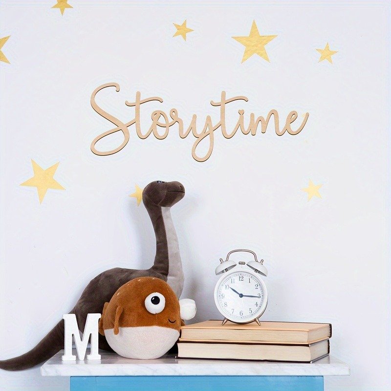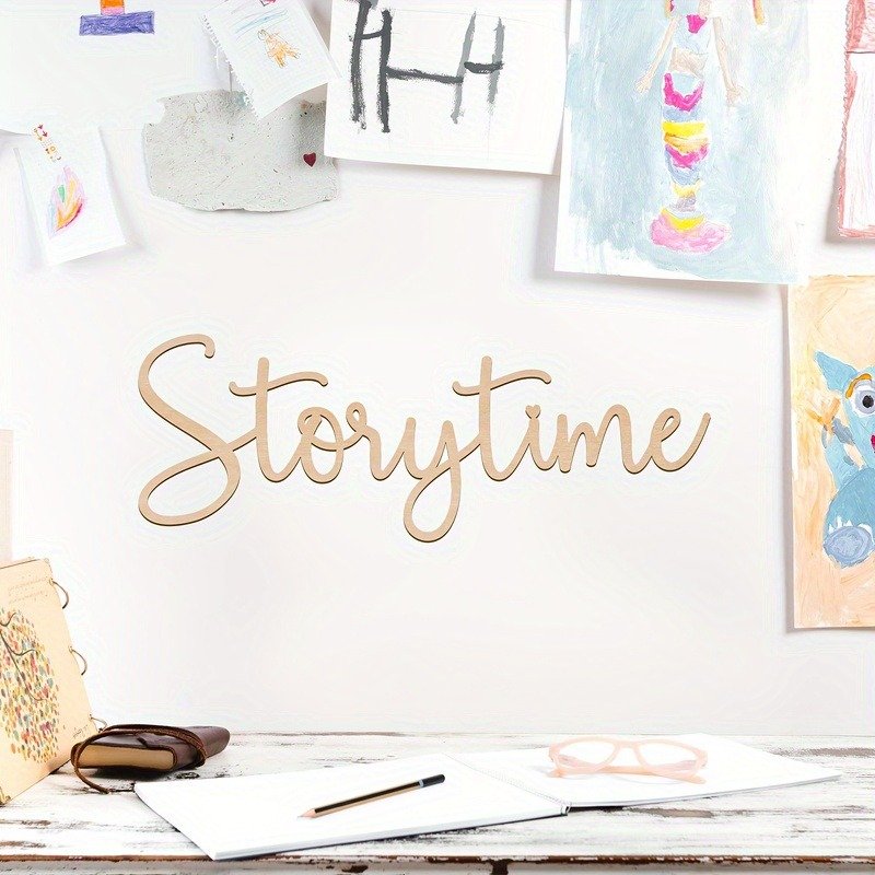 Rustic wooden “Storytime” wall sign-family theme lettering, indoor horizontal wall art, suitable for home office, nursery, game room decoration, suitable for mother’s day and graduation gifts, home decoration