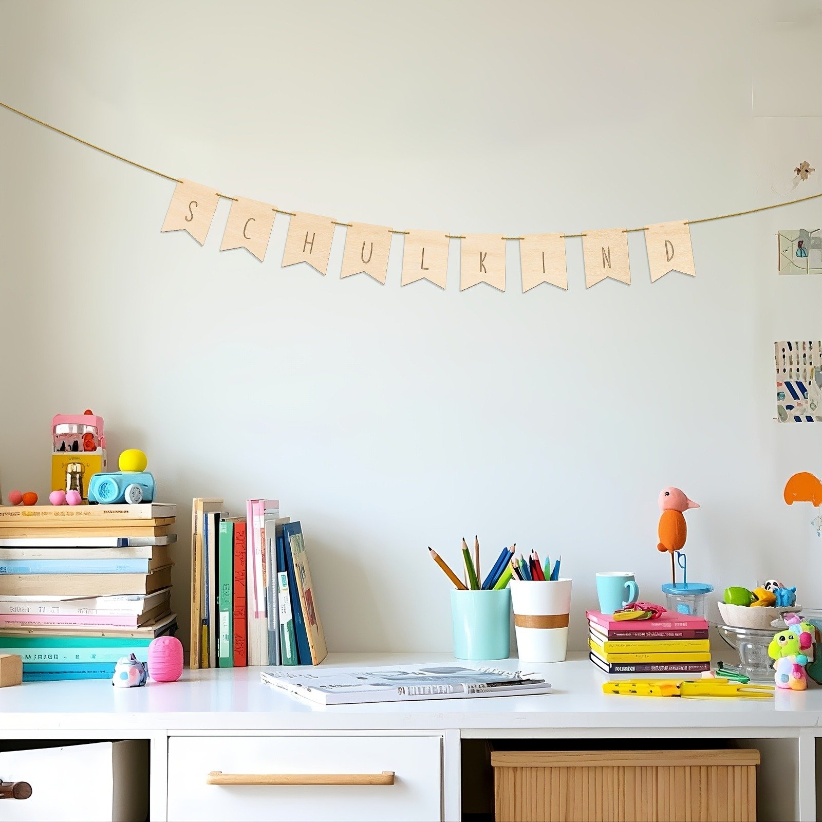 Schulkind Wooden Pennant Chain Banner – Perfect for Back to School Party Decoration