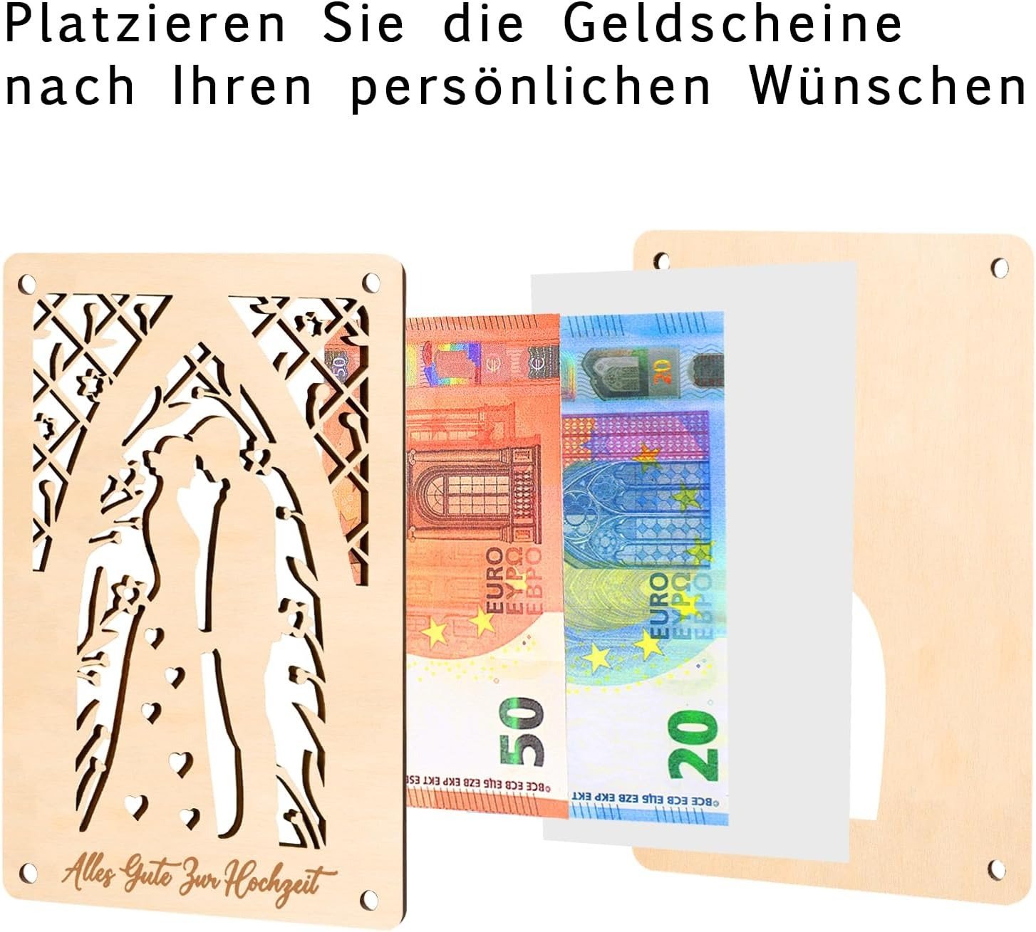 - PERSONALISED Place money between wooden boards to reveal the corresponding color. The white paper you carry with you offers you the opportunity to express your blessings to the bride and groom.
