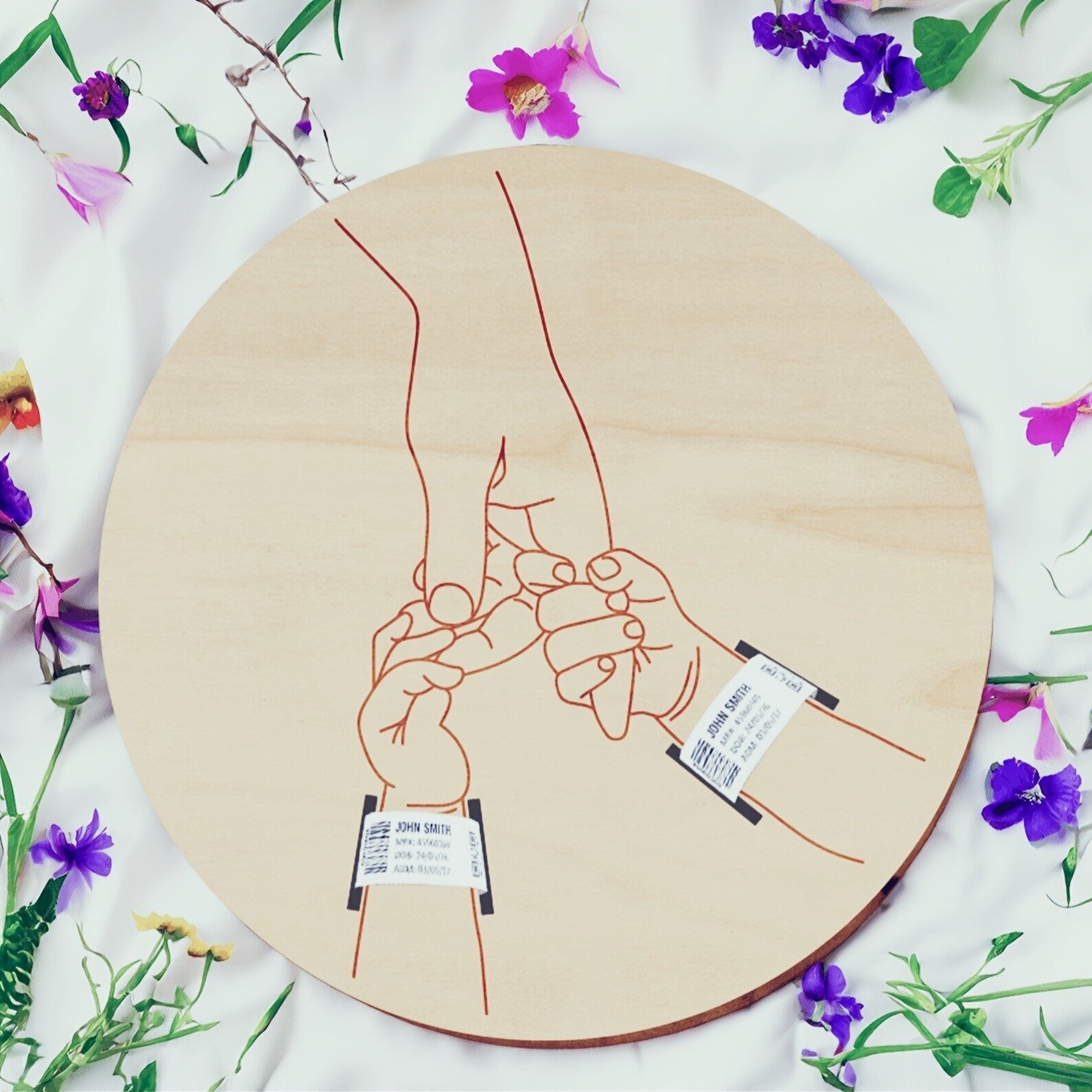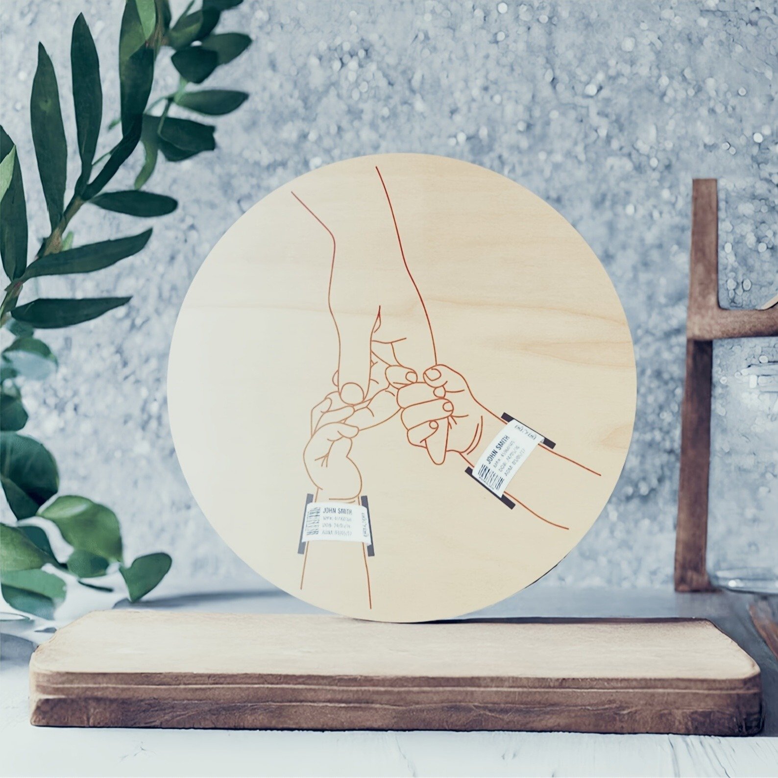 Wooden Youngsters Hospital Wristband Holder – Laser-Cut Craft, Unique Keepsake for First-Time Parents